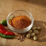 - Tilsæt vindaloo-krydderipasta og chilipulver, og steg i et halvt minut, mens du rører rundt.